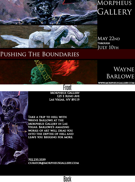 InDesign CS5 | Photoshop CS5 | Wayne Barlowe Morpheus Gallery campaign | Postcard
